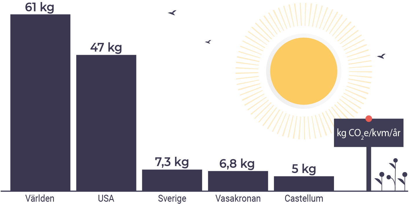 Siffror som däremot är enklare att få fram är de från våra kunder Vasakronan och Castellum, som båda är förebilder inom hållbarhetsarbete!