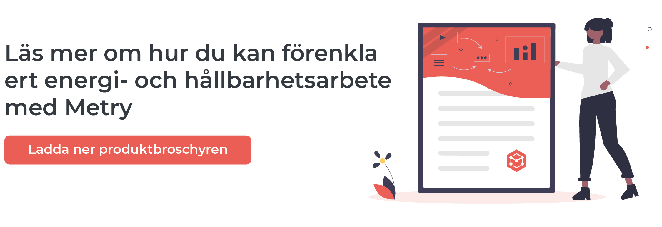 På Metry är vi är experter på insamling, och vi lämnar hållbarhetsanalyser, energiuppföljning och hyresgästfakturering till de som är experter på det.
