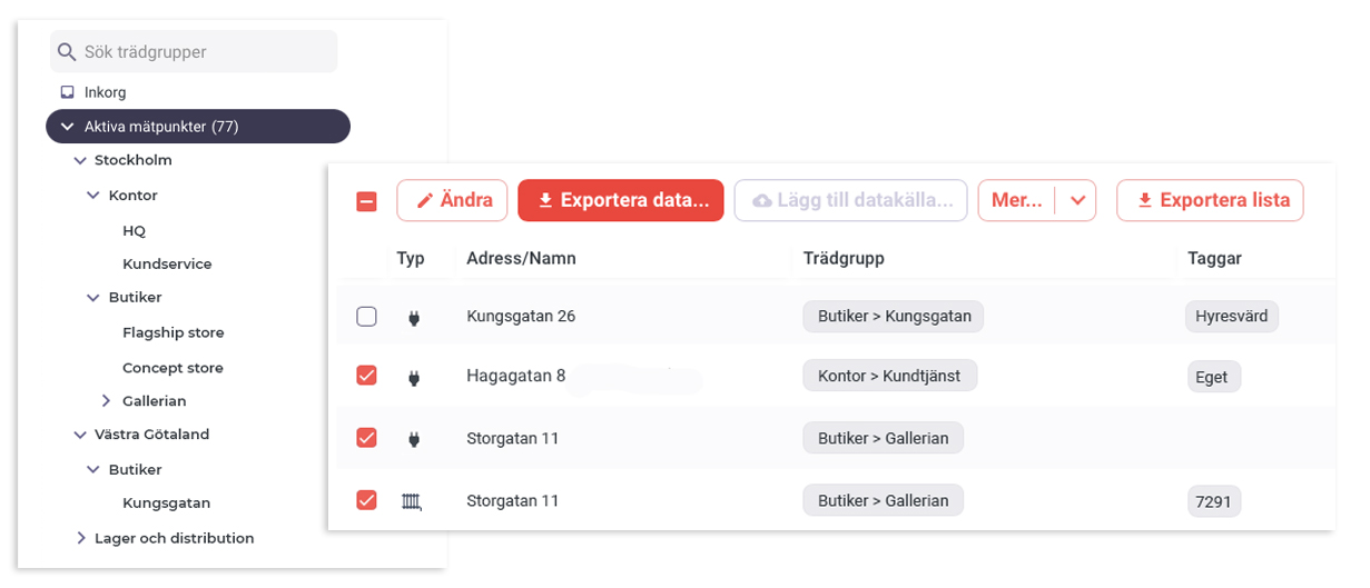 I Metry-portalen kan du sätta upp en struktur som matchar era behov, dela upp era mätpunkter efter städer, regioner eller affärsområden och tilldela access till de förvaltare som ansvarar för respektive lokaler.